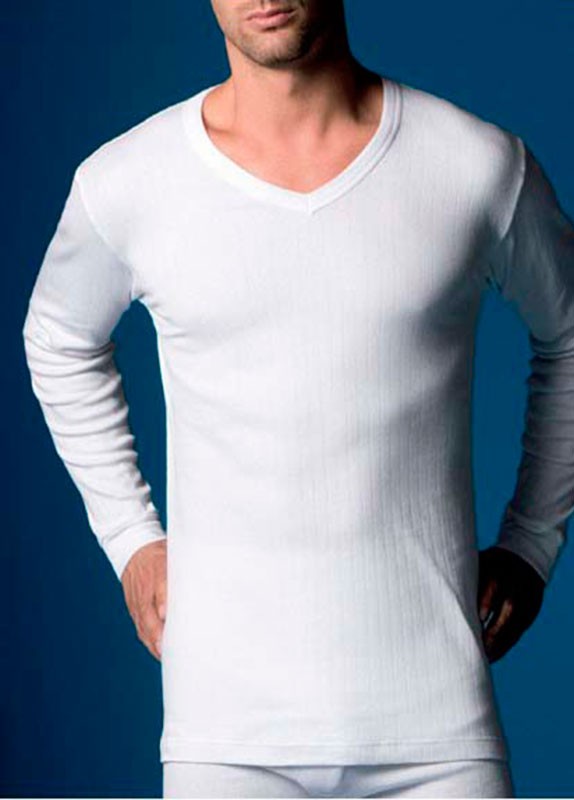 Camiseta hombre algodón 100% TERMAL manga larga CUELLO DE PICO