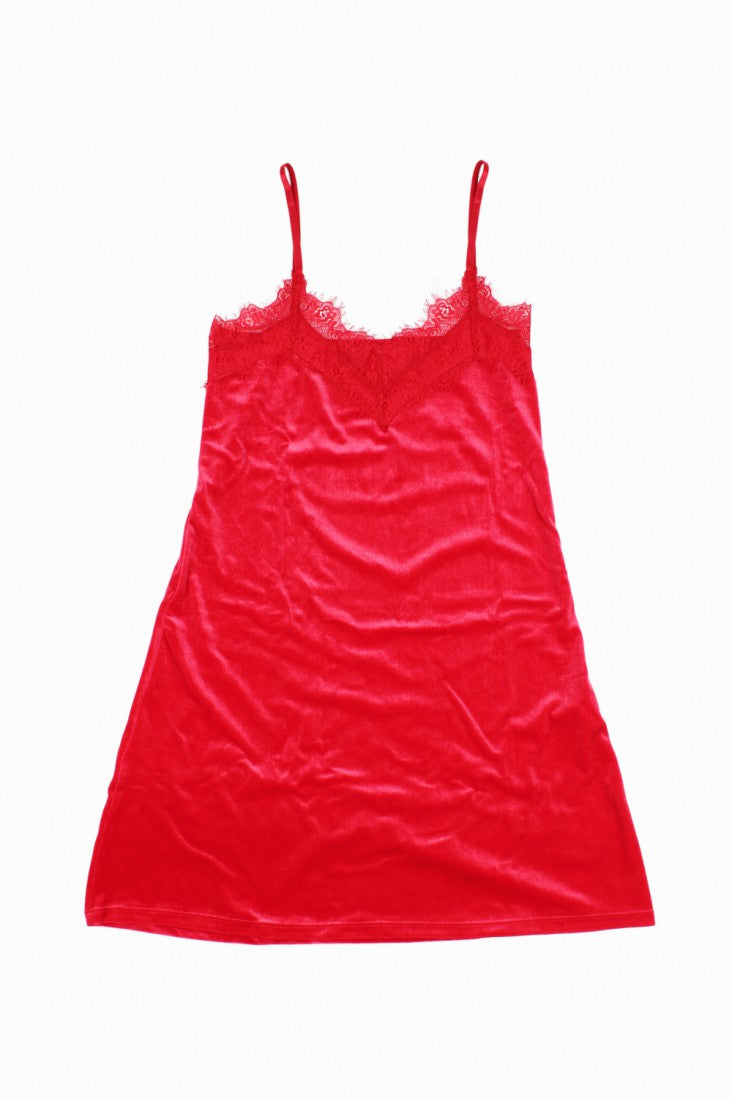 * Tentación para mujer de terciopelo con detalles de encaje en dos combinaciones de color rojo y negro