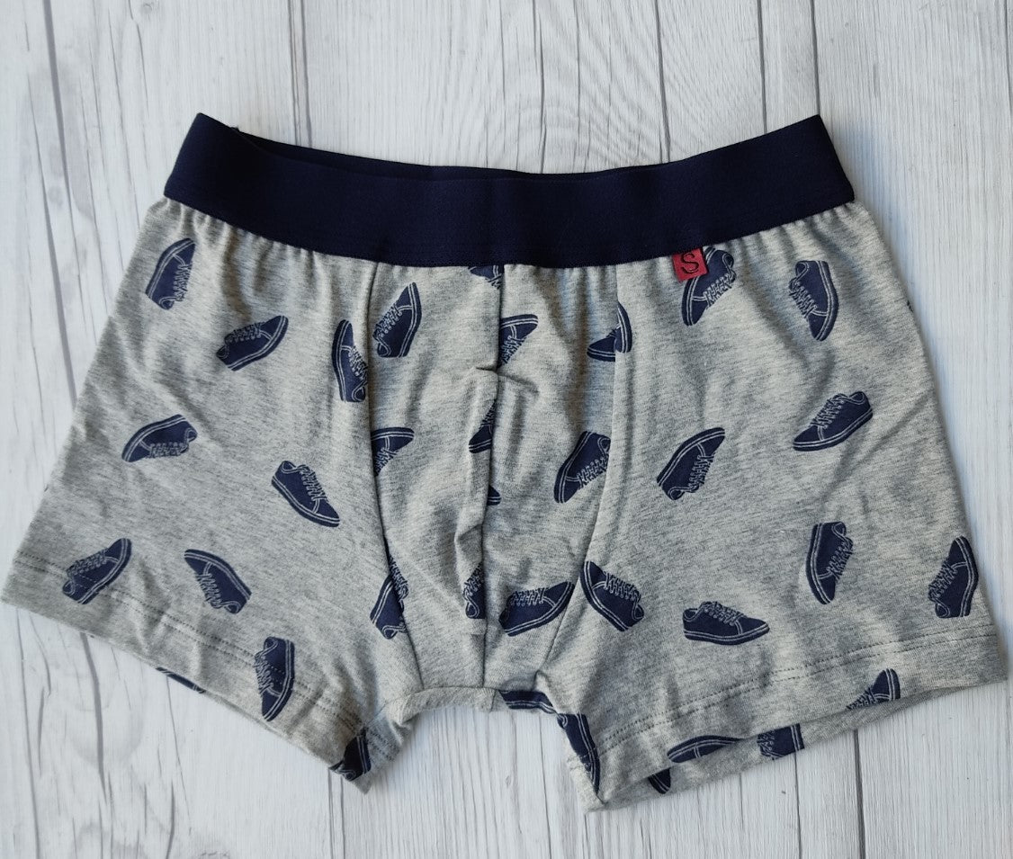 Boxer de niño en algodón elástico con goma vista y estampado en zapatillas de deporte muy actual y divertido.