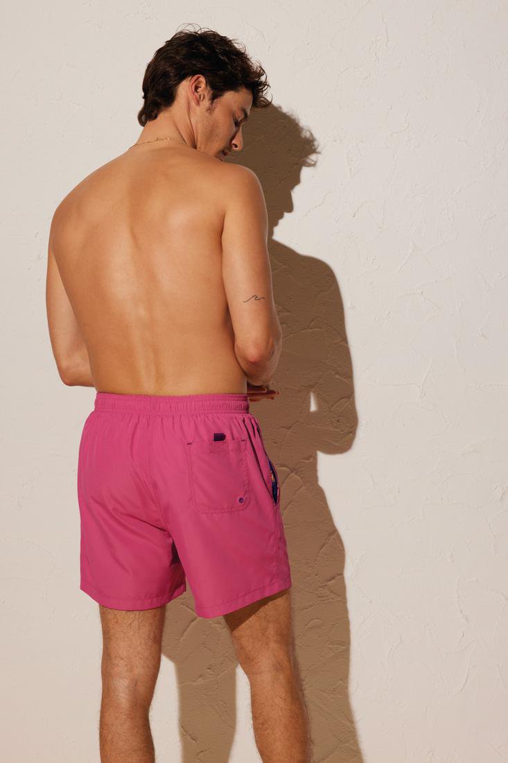 Bañador de corte medio y secado rápido. Tejido Ligero. Cordón en cintura con el que ajustar la prenda a la silueta. Suspensor interior en suave malla para un confort total. Bolsillos laterales y traseros con evacuadores de agua.