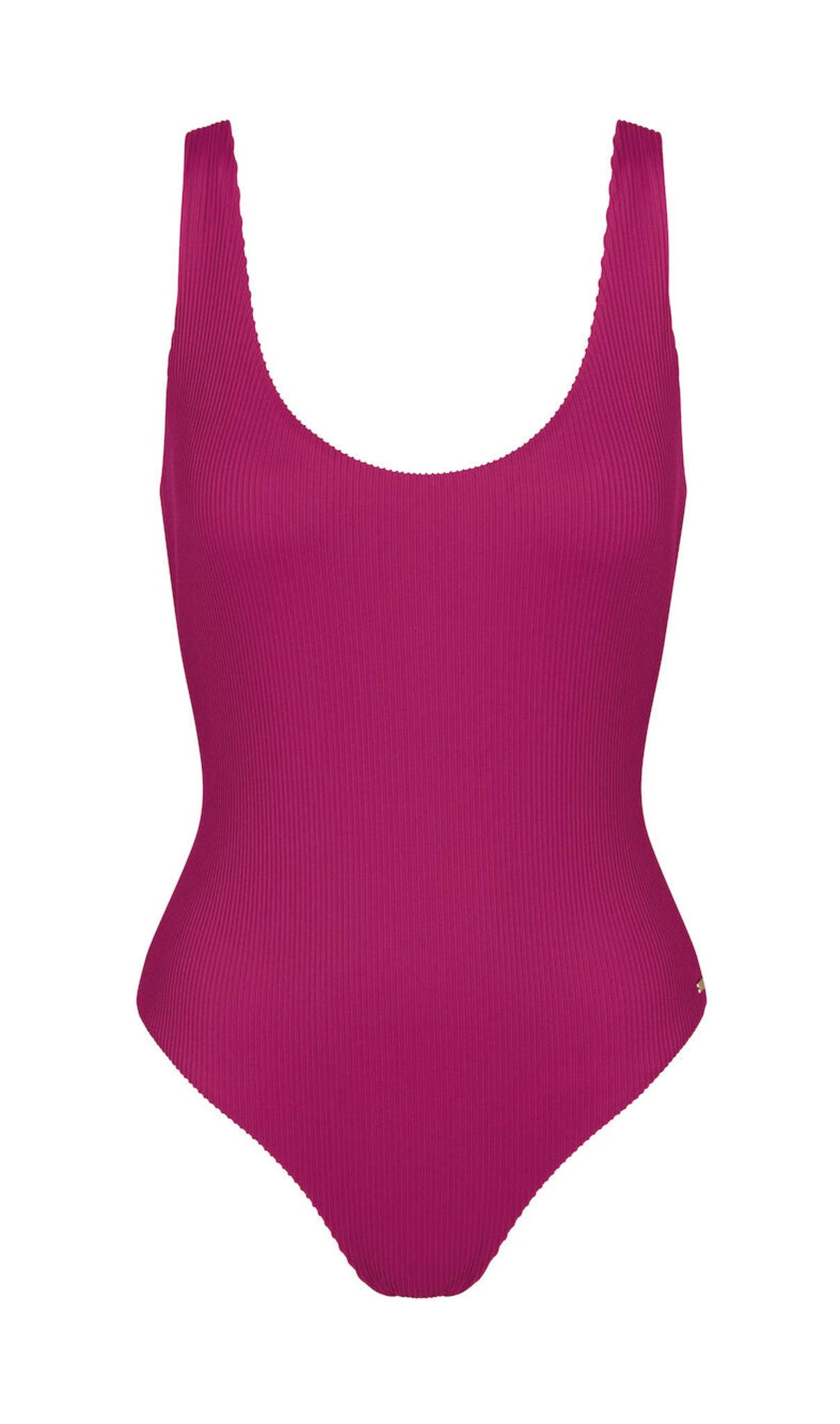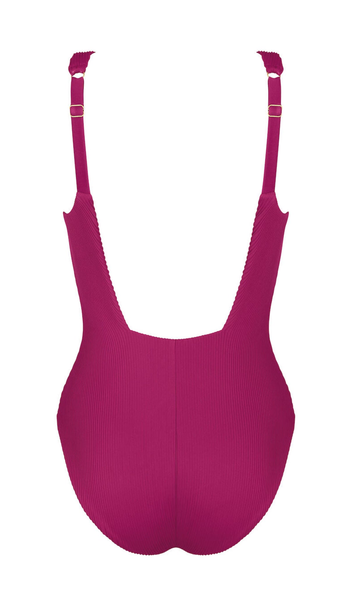Bañador de control en tejido liso de canalé en color frambuesa vibrante.Top interior para mayor sujeción del pecho.