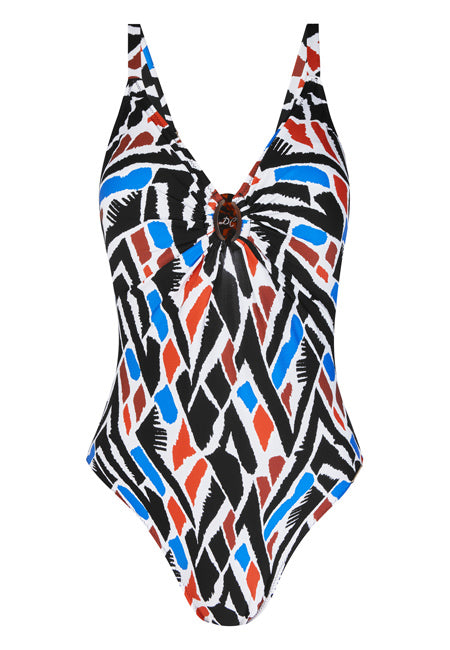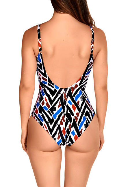 Bañador reductor estampado geométrico tonos azules Dolores Cortés