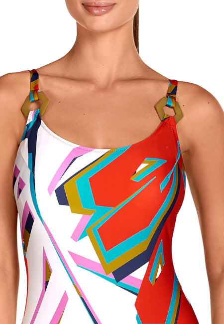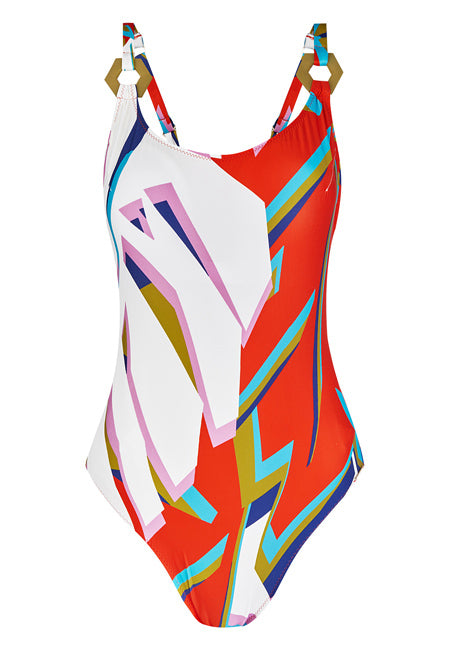 Bañador REDUCTOR de mujer con estampado posicional que estiliza la figura.