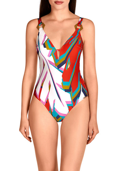 Bañador REDUCTOR de mujer con estampado posicional que estiliza la figura.