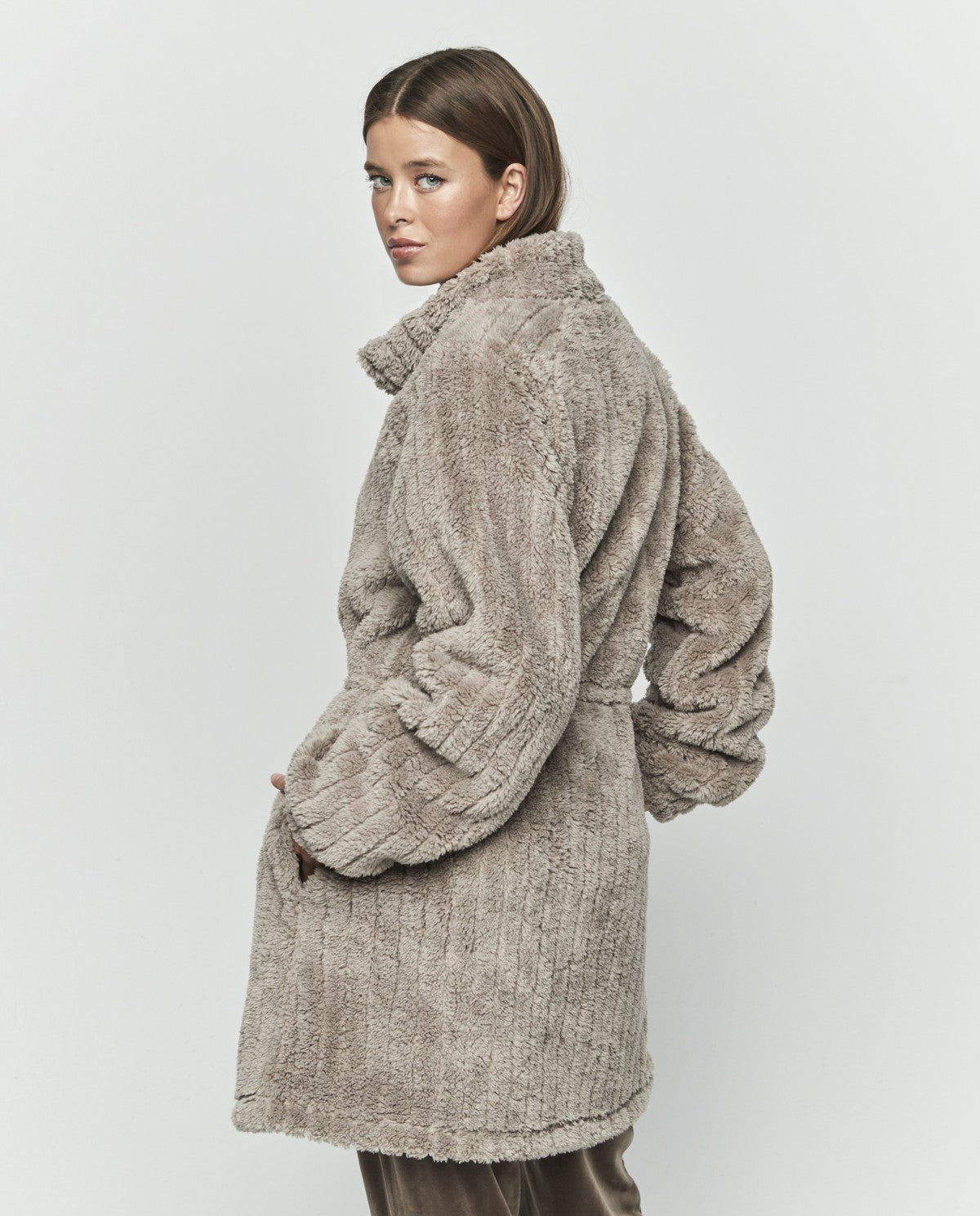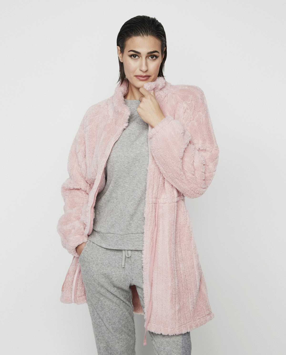Bata larga de mujer con cremallera y tirantes ajustables en la cintura. Esta prenda será tu abrazo calentito para el invierno.