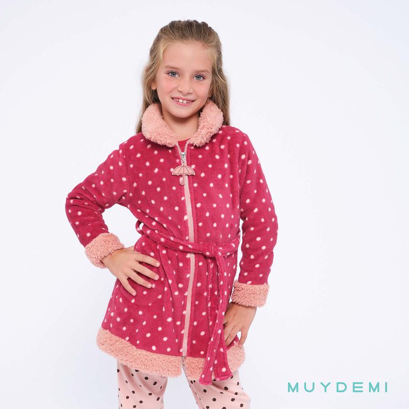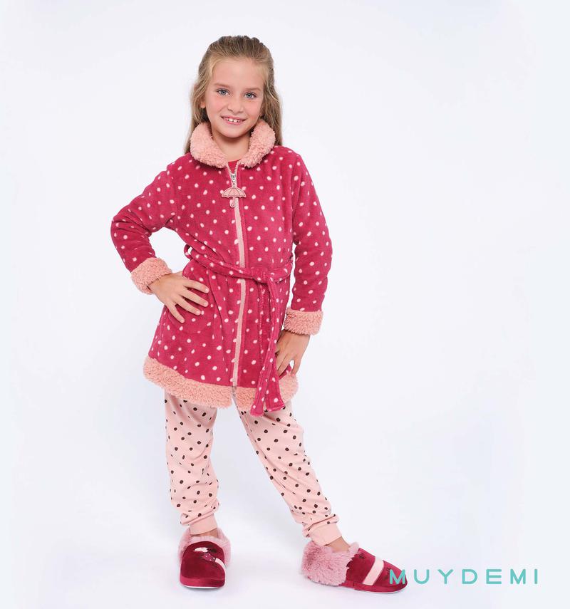 Bata de niña coralina estampado lunares con cremallera y cinturón MUYDEMI