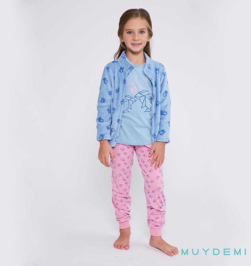 Bata de niña corta en tejido de borreguito con cierre cremallera. Cremallera con detalle de corazón haciendo contraste.