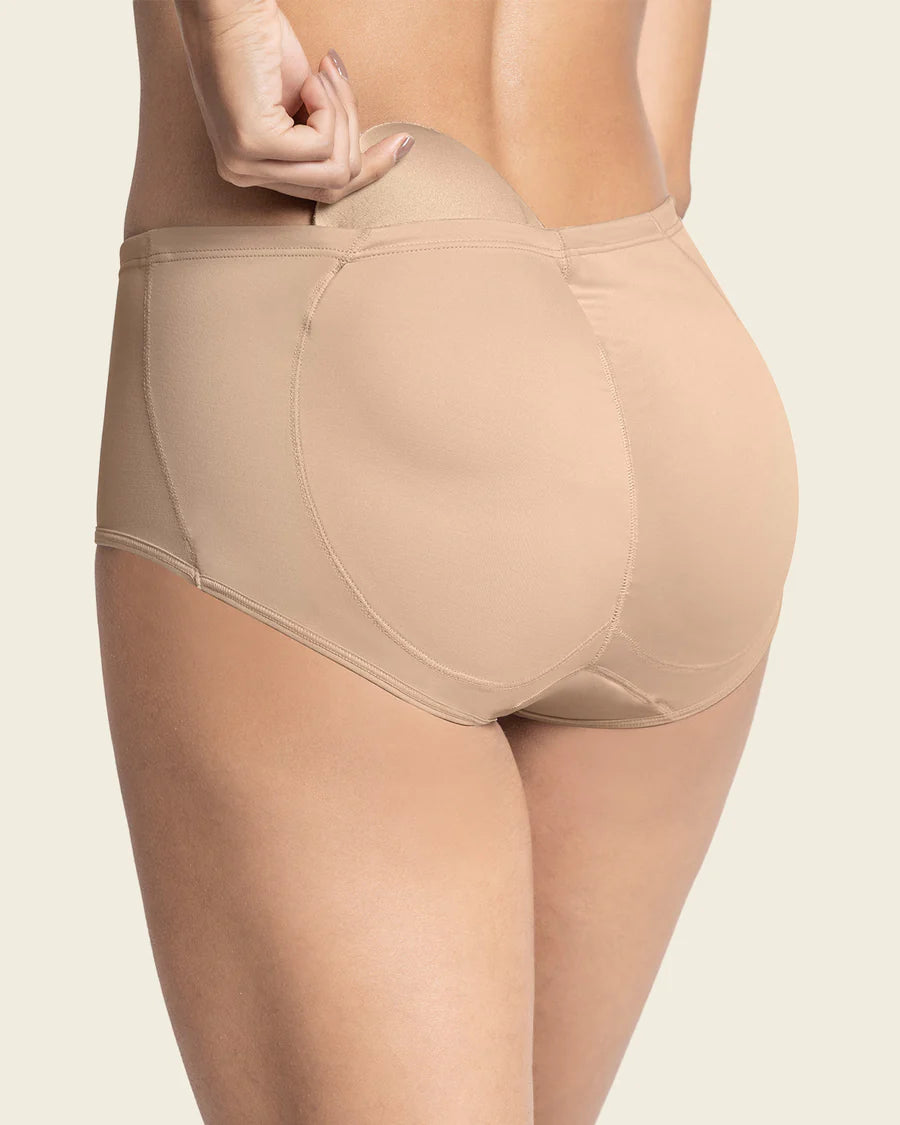 Aumenta tus glúteos en segundos con este braga de push up con almohadillas removibles. Te sorprenderá lo natural que se ve y lo mejor, nadie notará el secreto que llevas bajo tu ropa. Además su modelación hace que parezcan tus propios glúteos, y su costura en el centro les da un efecto más redondeado. Su material es muy cómodo y suave al tacto. El refuerzo en algodón inferior te aportará frescura y comodidad. Es incluso apropiado para quienes necesiten mayor comodidad al sentarse.