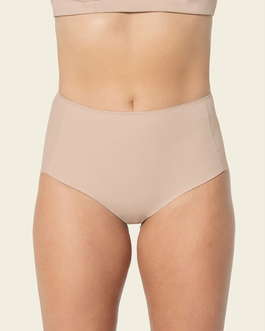 Experimenta la comodidad extrema con este braga clásica invisible de tiro alto y de control fuerte en abdomen medio y bajo. Está elaborado en DuraFit, un material de tacto frío que comprime con total confort y suavidad. Gracias a su doble capa de tela en la parte frontal estiliza más tu figura y su costura recogida en el centro de los glúteos, hará que se vean mucho más redondeados. Además, debido a su alta tecnología, no tiene costuras en las piernas ni en los glúteos, por lo que no se marca en tu piel o en la ropa exterior. Su refuerzo inferior en algodón hará que te sientas mucho más cómoda ¡será tu braga clásica favorita!