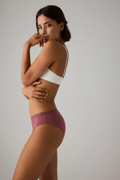 Completa tu colección de ropa interior con nuestra elegante braga midi de algodón, destacada por los delicados detalles de encaje en la cintura. Esta pieza combina la suavidad del algodón con la sofisticación del encaje, ofreciéndote comodidad y estilo a partes iguales. Disfruta de un ajuste perfecto y un toque de elegancia en cada ocasión con esta braga midi.