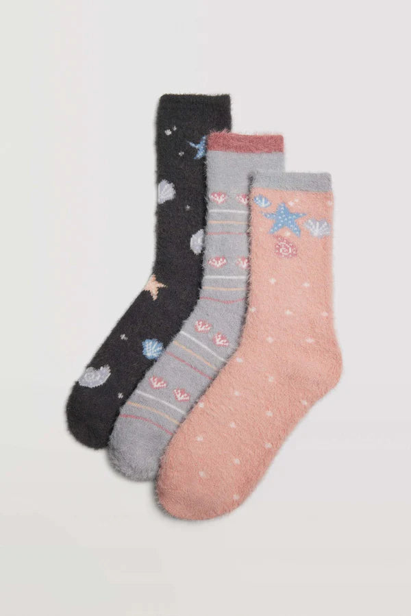 Calcetines de mujer de pelo estampados. Puño especial antipresión para mayor comodidad y total confort. Tacto suave. Tres estampados diferentes.