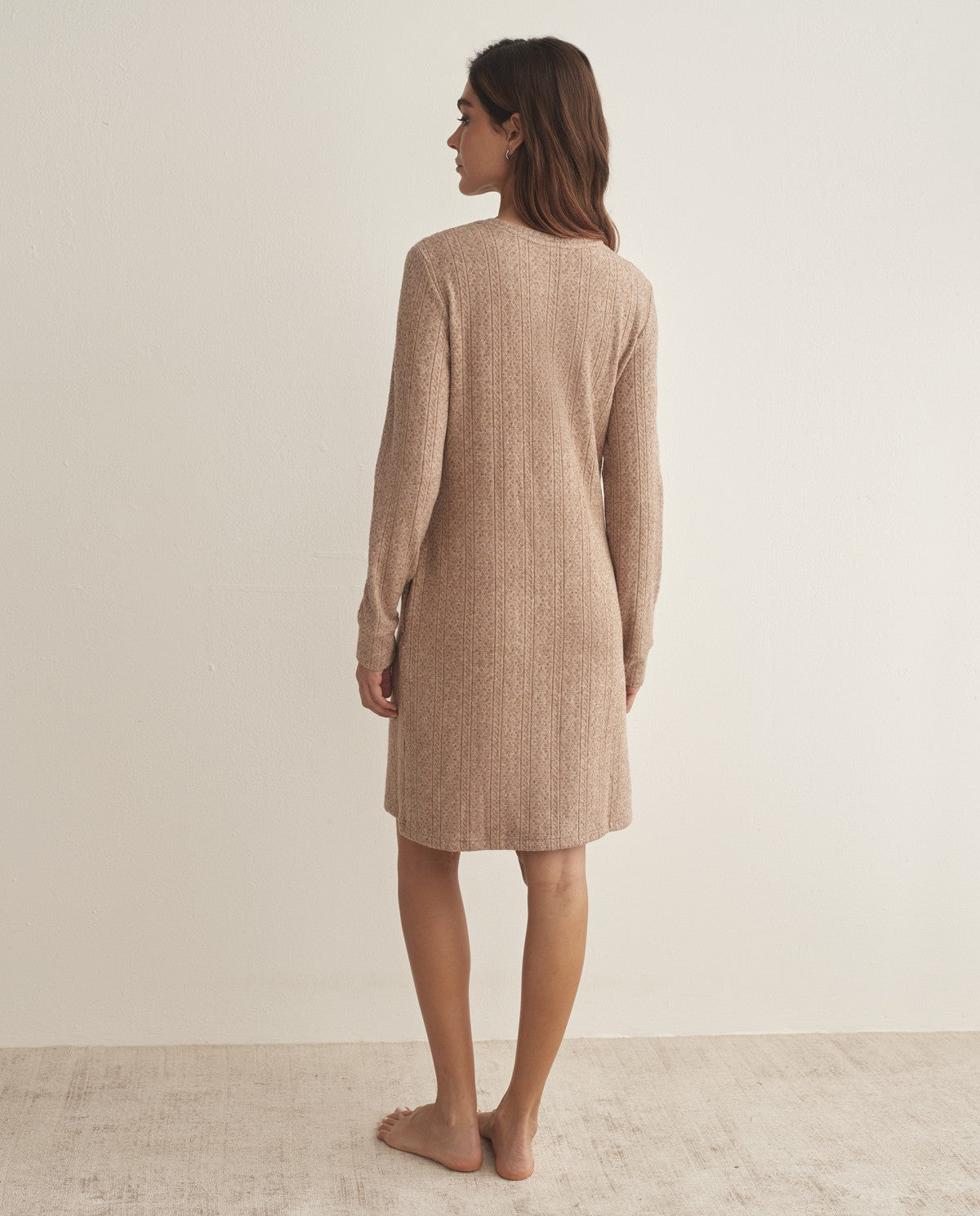 Camisón de manga larga. Con cuello redondo y bolsillos. De tejido suave, abrigado y con textura. Un diseño sencillo y atemporal, perfecto para noches de frío.