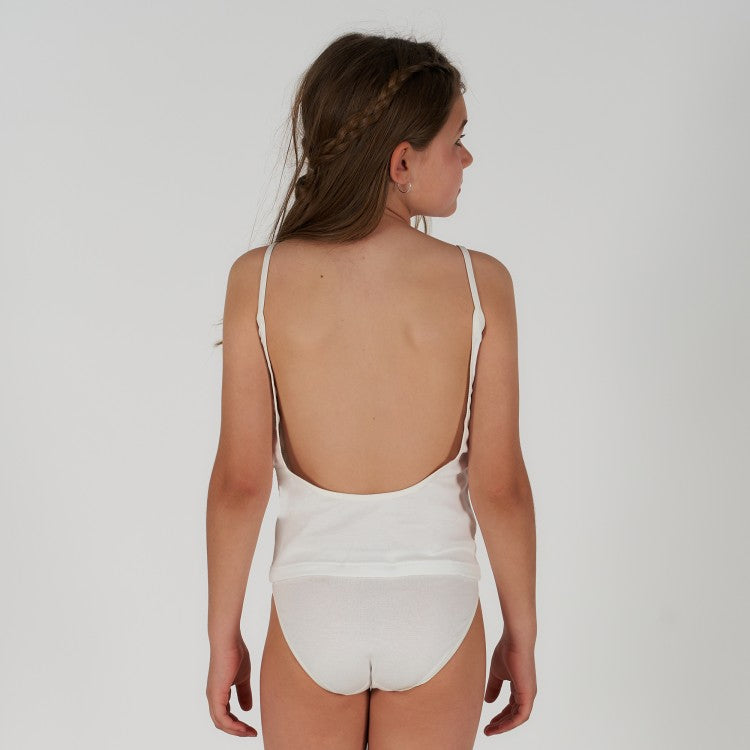 Conjunto de camiseta con escote trasero y braguita infantil perfecta para ocasiones especiales como la Primera Comunión.