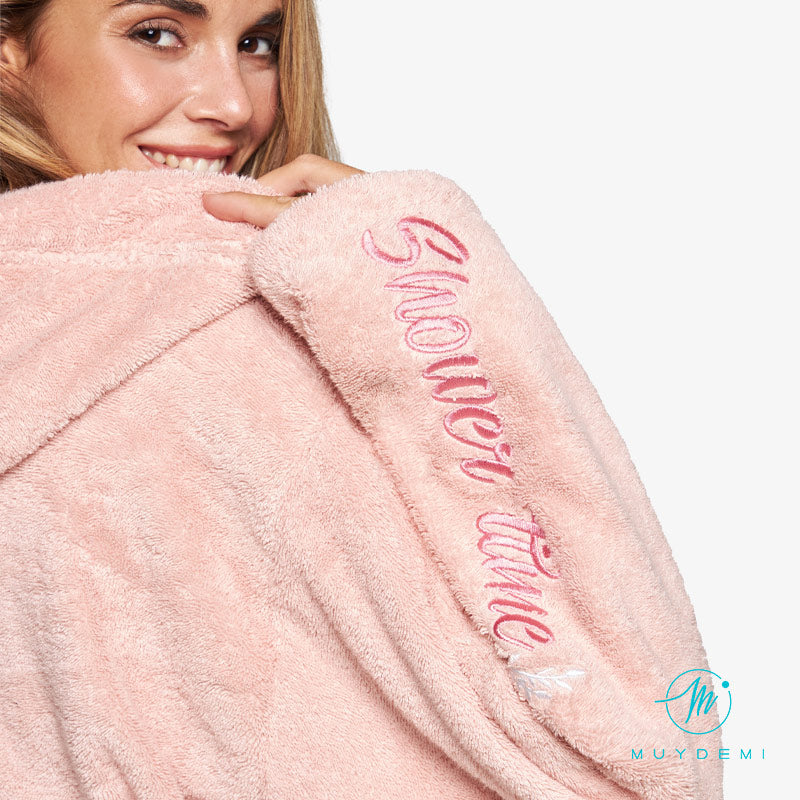 Albornoz de mujer de rizo de algodón de alta calidad, super absorbente y suave.