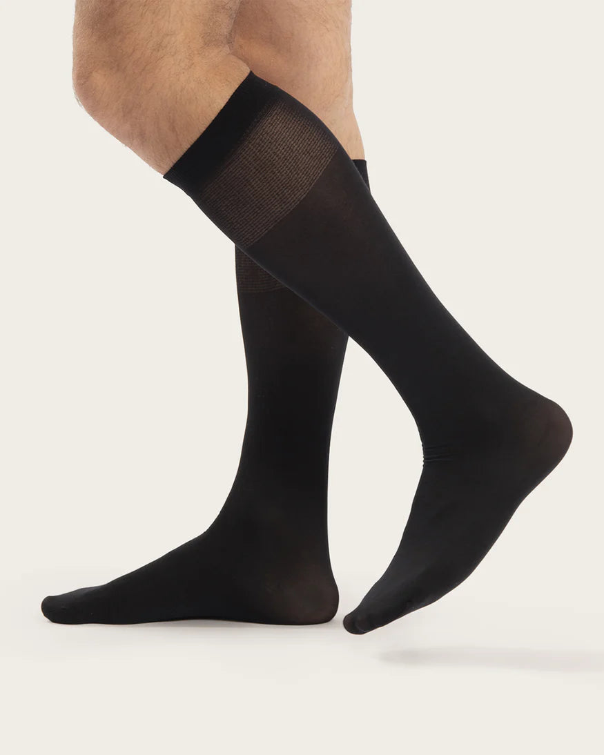 Completa tu look con nuestros elegantes calcetines tipo ejecutivo. Elaborados con materiales de alta calidad ofrecen un tacto suave y agradable para evitar dolores y malestares durante el día, con su ajuste perfecto se evita los deslizamientos y roces. Ideal para un día largo de trabajo.