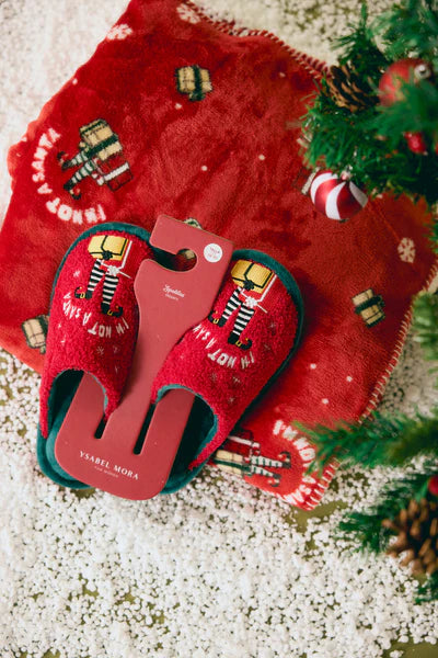 Su diseño en color rojo con estampado de regalos y piernas de elfo, junto al mensaje “I’m not a Santa”, la convierte en la compañera ideal para sofá, cama o tardes de peli.