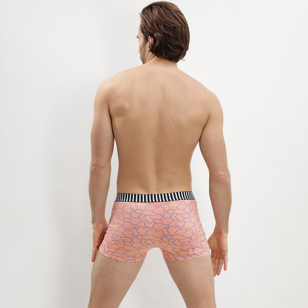 Pon un poco de diversión y energía en tu vida diaria con el juego de 3 calzoncillos para hombre Dim Vibes en algodón stretch Negro y Coral con estampados gráficos