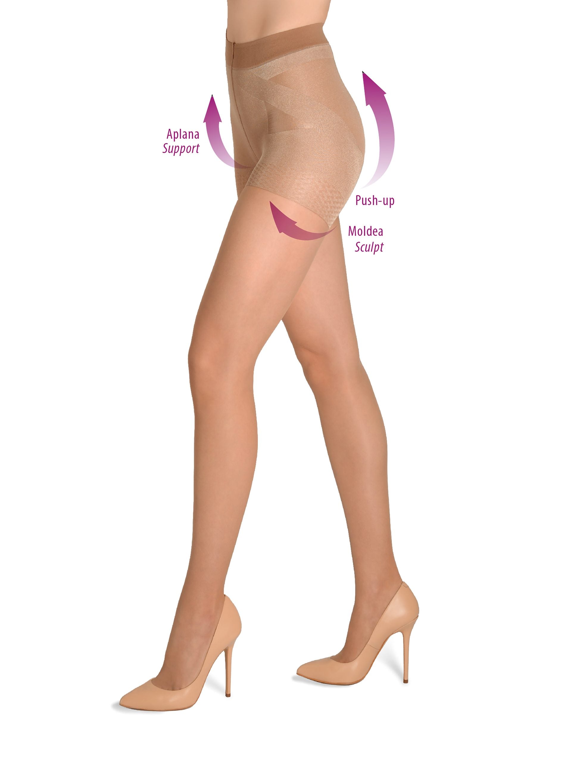 La estructura del panty garantiza una compresión cómoda y progresiva, manteniéndose estable durante todo el día sin perder elasticidad. Gracias a su diseño transparente y uniforme, se adapta perfectamente a cualquier look, incluso bajo prendas ajustadas.