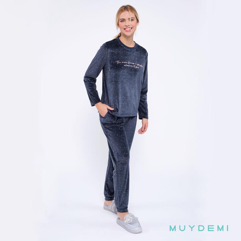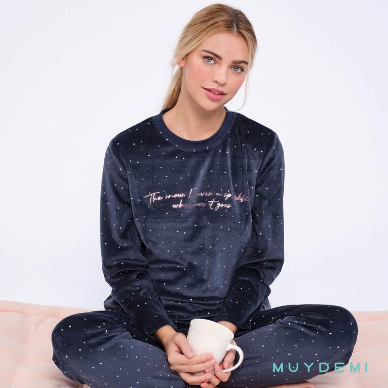 Pijama mujer micro coralina elástica azul marino copos nieve MUYDEMI