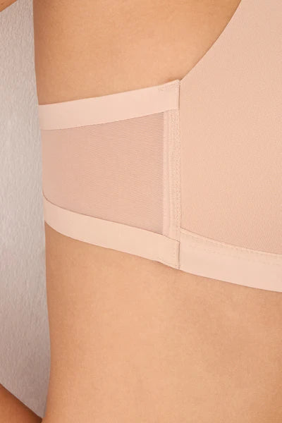 Dentro de la línea nomarks, el modelo Brisa representa una vida sin presiones y un diálogo de bienestar con tu cuerpo. Es un sujetador sin aros que maximiza la comodidad sin perder la forma.
