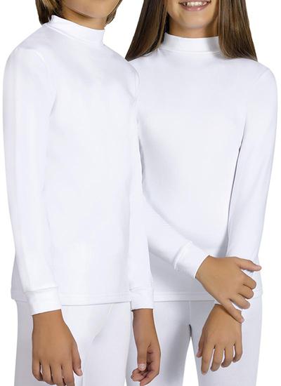 Camiseta termal infantil con manga larga y cuello semicisne.