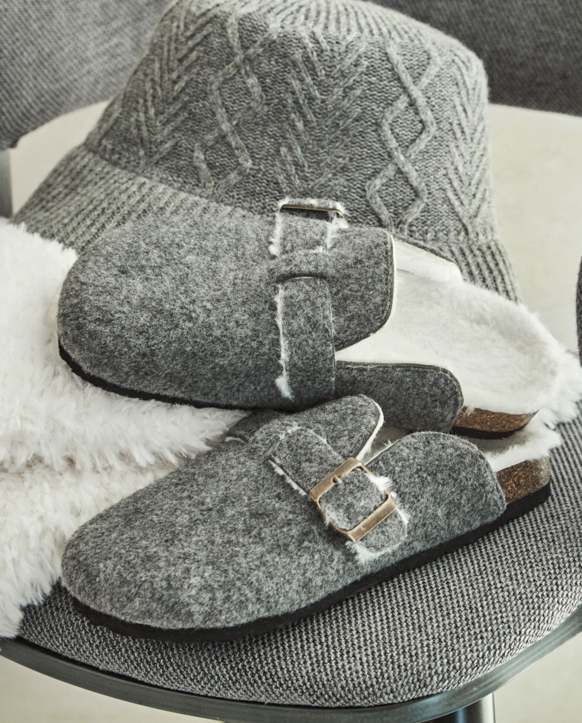 Zapatillas estilo zueco de mujer super acolchadas y con suela de caucho antideslizante. Ideal estar cómoda y abrigada en casa sin perder estilo.